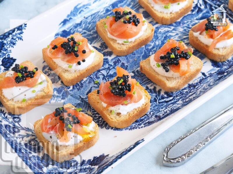 El salmón ahumado es perfecto para adornar canapés y aperitivos para reuniones y celebraciones.
