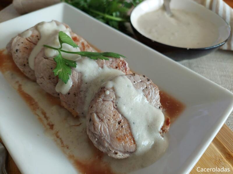 Para una presentación elegante, coloca los solomillos de cerdo en platos individuales, cúbrelos con la salsa y decora con perejil fresco picado. Acompaña con tus guarniciones favoritas, como puré de papas o verduras al vapor. Esta receta es ideal para ocasiones especiales o cuando deseas impresionar a tus invitados con un plato sabroso y sofisticado.